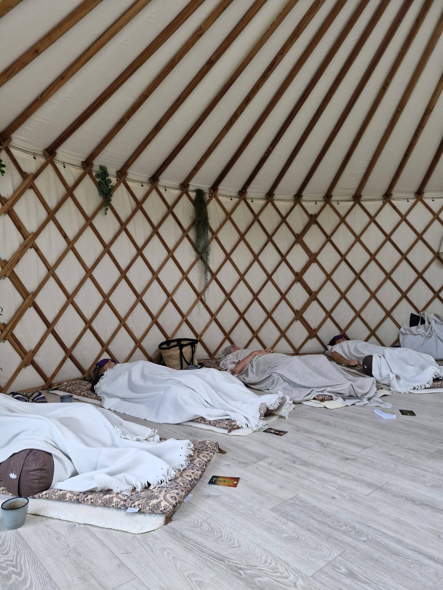 De fleste mødegange er fysiske i jurten på Lykkedal i Helsinge: